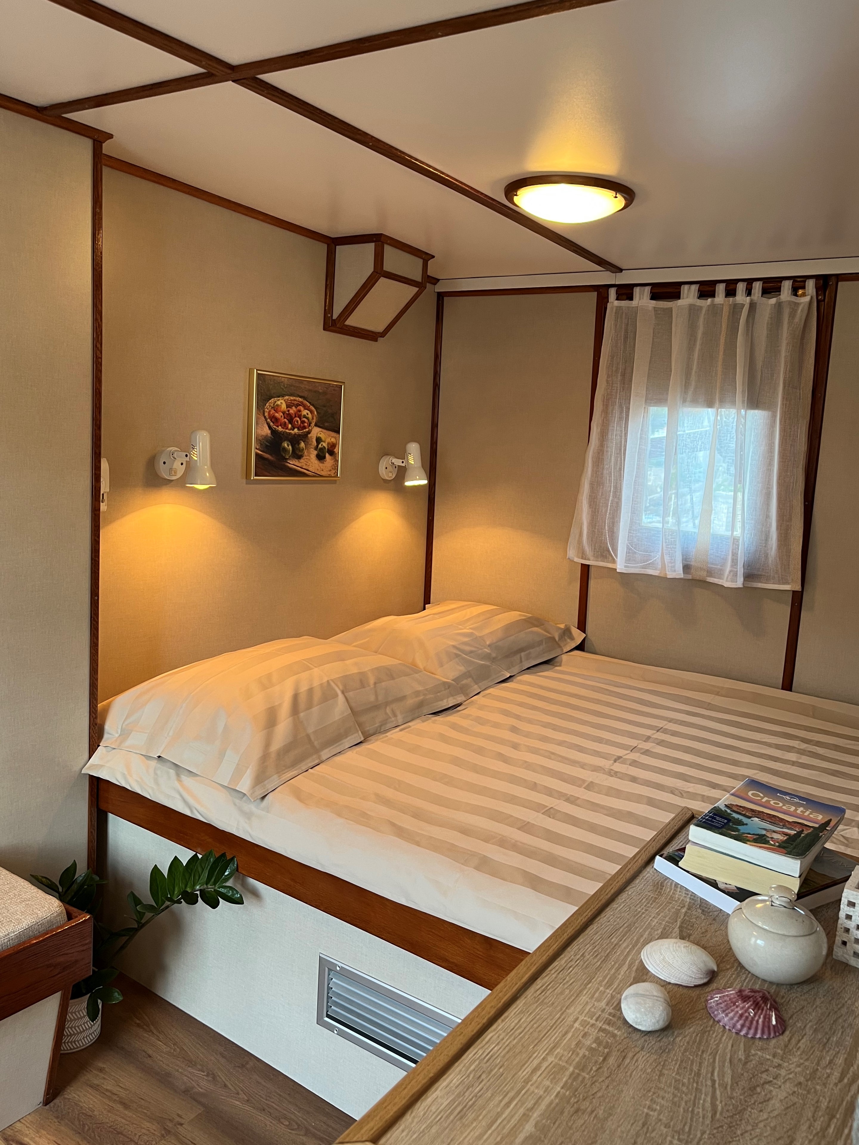 je tradiční jadranská loď, postavená v roce 1887 na Korčule. První velkou rekonstrukci zažila po sto letech, zatím poslední pak v roce 2021. Délka lodi je 26,5 m, šířka 6 m. Loď má horní palubu se dvěma 2lůžkovými kajutami třídy A+ (dvojlůžka), hlavní palubu se salonem a dvěma 2lůžkovými kajutami tř. A+ (dvojlůžka) a podpalubí s pěti 2lůžkovými kajutami tř. A (palandy), bez oken. Kajuty na hlavní a horní palubě jsou prémiové, mimořádně prostorné, a proto s příplatkem. Všechny kajuty na lodi mají vlastní příslušenství a klimatizaci. Loď je vybavena pro pobyt 18ti osob, oplývá velkorysým venkovním relaxačním prostorem s různými zákoutími pro posezení více skupinek nebo párečků. Kapitán velí čtyřčlenné posádce.
